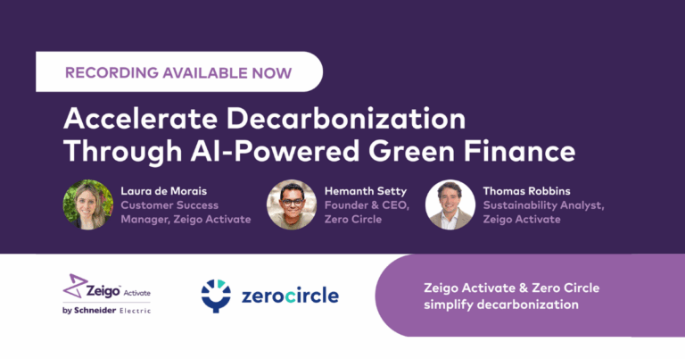This webinar marks a significant collaboration between Zero Circle, a sustainable finance marketplace, and Zeigo Activate (by Schneider Electric), a leading sustainability software that accelerates SME decarbonization efforts.